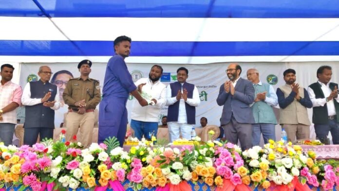 चंद्रपुर के कल्याण गुरुकुल में हुए एक प्रोग्राम में 78 सफल युवाओं को सर्टिफिकेट दिए गए. तोरपा विधायक सुदीप गुड़िया ने चुने गए युवाओं को अपॉइंटमेंट लेटर दिए. कल्याण मंत्री चमरा लिंडा को प्रोग्राम में आना था, लेकिन जब दोपहर 2 बजे तक मंत्री नहीं आए, तो विधायक ने युवाओं का हौसला बढ़ाया और बधाई और शुभकामनाएं दीं. सभी युवा शनिवार को दुबई के लिए रवाना होंगे.