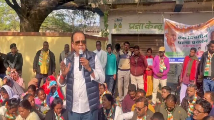 - केंद्र सरकार द्वारा मनरेगा योजना का नाम बदलकर वीबी जी राम जी किए जाने के विरोध में कांग्रेसियों में भारी आक्रोश है. कांग्रेस ने जामताड़ा प्रखंड कार्यालय के समक्ष जमकर विरोध प्रदर्शन किया. झारखंड सरकार के स्वास्थ्य मंत्री इरफान अंसारी के नेतृत्व में मनरेगा का नाम बदलकर वीबी जी राम जी करने के विरोध में कांग्रेसियों ने प्रखंड कार्यालय के समक्ष सड़क पर जमकर प्रदर्शन किया और केंद्र सरकार के खिलाफ जमकर नारेबाजी की. वही प्रदर्शन कर रहे कांग्रेस नेताओं ने मनरेगा योजना का बदले नाम को वापस लेने की मांग की.