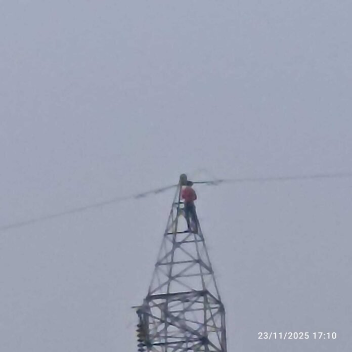 Dhanbad News: टुंडी की कोलहर पंचायत के खरियोटांड़ में अशोक मरांडी नामक एक युवक रविवार की शाम पांच बजे बिजली के टावर पर चढ़ गया. इससे अफरा-तफरी मच गयी. ग्रामीणों ने घटना की सूचना विधायक मथुरा महतो को दी. विधायक ने तत्काल टुंडी थाना प्रभारी को घटनास्थल पर भेजा. पुलिस ने पहुंच कर युवक से टावर से नीचे उतरने का आग्रह किया, लेकिन युवक उतरने को तैयार नहीं हुआ. पुलिस ने माइक मंगाकर युवक से नीचे उतरने की अपील की, लेकिन वह कुछ भी मानने को तैयार नहीं था. सूचना पाकर युवक की पत्नी व उसके दोनों बच्चे घटनास्थल पर पहुंचे. पत्नी के कहने पर रात करीब सात बजे युवक टावर से नीचे उतरा.