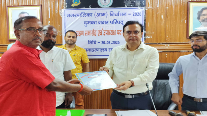 समाहरणालय परिसर में शुक्रवार को आयोजित शपथ ग्रहण समारोह में दुमका नगर परिषद और नगर पंचायत बासुकीनाथ के अध्यक्ष और सभी वार्ड पार्षदों के पद और गोपनीयता की शपथ दिए जाने के बाद उपाध्यक्ष पद का विधिवत चुनाव सम्पन्न हुआ. दोनों जगह उपाध्यक्ष पद के लिए दो-दो उम्मीदवारों ने उपाध्यक्ष पद के लिए अपना नामांकन पर्चा दाखिल किया. पूरी प्रक्रिया के बाद दोनों जगहों पर चुनाव कराया गया, जिसमें दुमका नगर परिषद के लिए वार्ड संख्या 20 से चौथी बार पार्षद बने मनोज कुमार सिंह ने वार्ड संख्या 10 के वार्ड पार्षद कन्हाई प्रसाद साह को 15 वोटों के अंतर से हराकर उपाध्यक्ष पद पर कब्जा जमाया.
