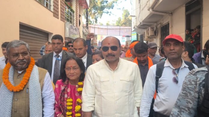 देवघर: झारखंड नगर निकाय चुनाव को लेकर सभी राजनीतिक पार्टियां अपने-अपने स्तर से प्रत्याशियों को मदद करने में जुटी हुई हैं. देवघर नगर निगम चुनाव में भारतीय जनता पार्टी रीता चौरसिया को समर्थन दे रही है. वहीं कांग्रेस रवि केसरी के समर्थन में दिन-रात मेहनत करती दिख रही है. भाजपा समर्थित मेयर प्रत्याशी रीता चौरसिया के समर्थन में बाबूलाल मरांडी ने वोट मांगे.