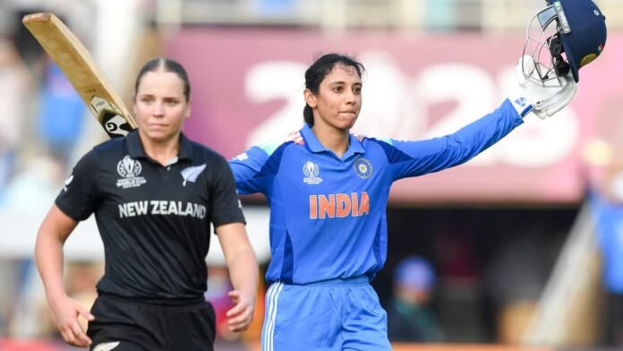 आईसीसी महिला वनडे विश्व कप 2025 का 24वां मुकाबला भारत और न्यूजीलैंड के बीच नवी मुंबई के डी. वाई पाटिल स्टेडियम में खेला जा रहा है. जहां भारत की सलामी बल्लेबाज स्मृति मंधाना ने शानदार शतकीय पारी खेलते हुए इतिहास रच दिया है. इस मैच में मंधाना ने 95 बॉल में 10 चौके और 4 छक्कों के साथ 109 रनों की तूफानी पारी खेली.