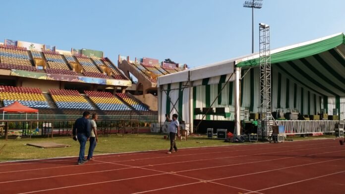 वहीं आयोजन स्थल पर तैयारियां लगभग पूरी हो चुकी हैं. ट्रैक की फिनिशिंग का काम अंतिम चरण में है. वहीं दर्शक दीर्घा में लाइटिंग और साउंड सिस्टम का ट्रायल जारी है.