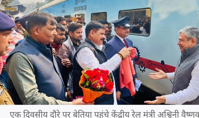 केंद्रीय रेल मंत्री अश्विनी वैष्णव रविवार को बिहार के एक दिवसीय दौरे पर पहुंचे। रेल मंत्री बनने के बाद यह उनकी पहली बिहार यात्रा थी, जिसे लेकर कार्यकर्ताओं और स्थानीय लोगों में काफी उत्साह देखा गया। बेतिया रेलवे स्टेशन पर NDA कार्यकर्ताओं ने फूल-मालाओं और गुलदस्तों से उनका भव्य स्वागत किया। इस दौरान भाजपा के कई वरिष्ठ नेता और स्थानीय कार्यकर्ता मौजूद रहे। रेल मंत्री के दौरे की सबसे बड़ी उपलब्धि बहुप्रतीक्षित छावनी आरओबी (रेल ओवरब्रिज) का लोकार्पण रहा। इस पुल के खुलने से छावनी के भीषण जाम से लोगों को राहत मिलेगी, साथ ही शहर की रफ्तार तेज होगी। जिले की करीब 45 लाख की आबादी को इसका सीधा लाभ मिलेगा। साथ ही नेपाल से जिला मुख्यालय तक डायरेक्ट कनेक्टिविटी भी संभव हो सकेगी।
